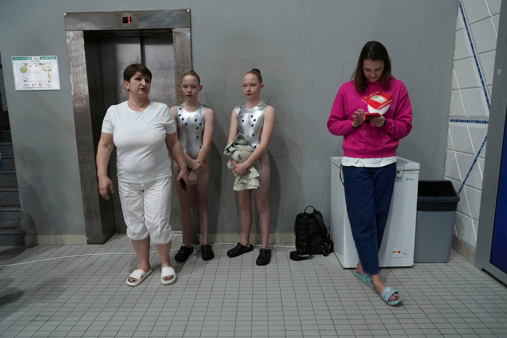 Maryna Aleksiiva said they used to think of the sports center as “our second home.” Their substitute pool in Kyiv doesn’t have the same broad depth of water, making it less suitable for practicing their underwater acrobatics, the sisters said. On a recent morning when they spoke to the AP, air raid sirens interrupted their training and they had to get out of the pool and take refuge in a bomb shelter until the all-clear sounded.