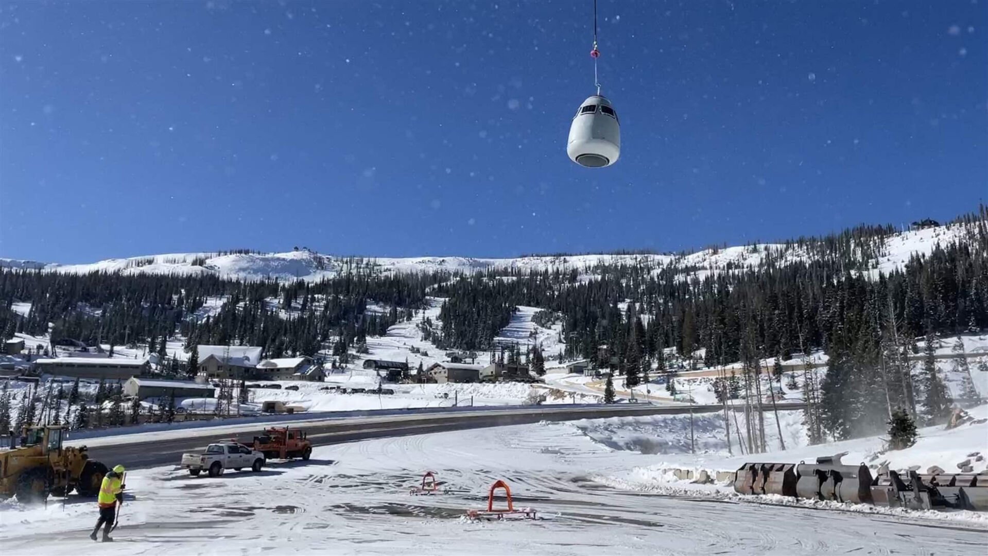 In this November 2022 photo, a helicopter picks up an egg-shaped remote avalanche exploder, which it transported to an area near U.S. 160 Wolf Creek Pass in southwest Colorado in November 2022.