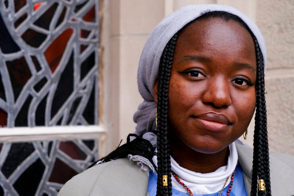 Nathalie Charles poses for a portrait outside the Princeton University Chapel in Princeton, N.J. on Wednesday, Dec. 8, 2021. Charles left her Baptist church at the age of 15 because as a queer woman of Haitian descent, she felt unwelcome in her congregation, with its conservative views on immigration, gender and sexuality. The 18-year-old freshman at Princeton has since identified as atheist, and then agnostic, before embracing a spiritual but not religious life.