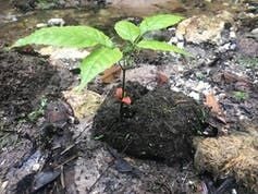 <p>Seedlings sprouting from elephant dung in Malaysia. Ahimsa Campos Arceiz, <a class="license" href="http://creativecommons.org/licenses/by-nd/4.0/">CC BY-ND</a></p>