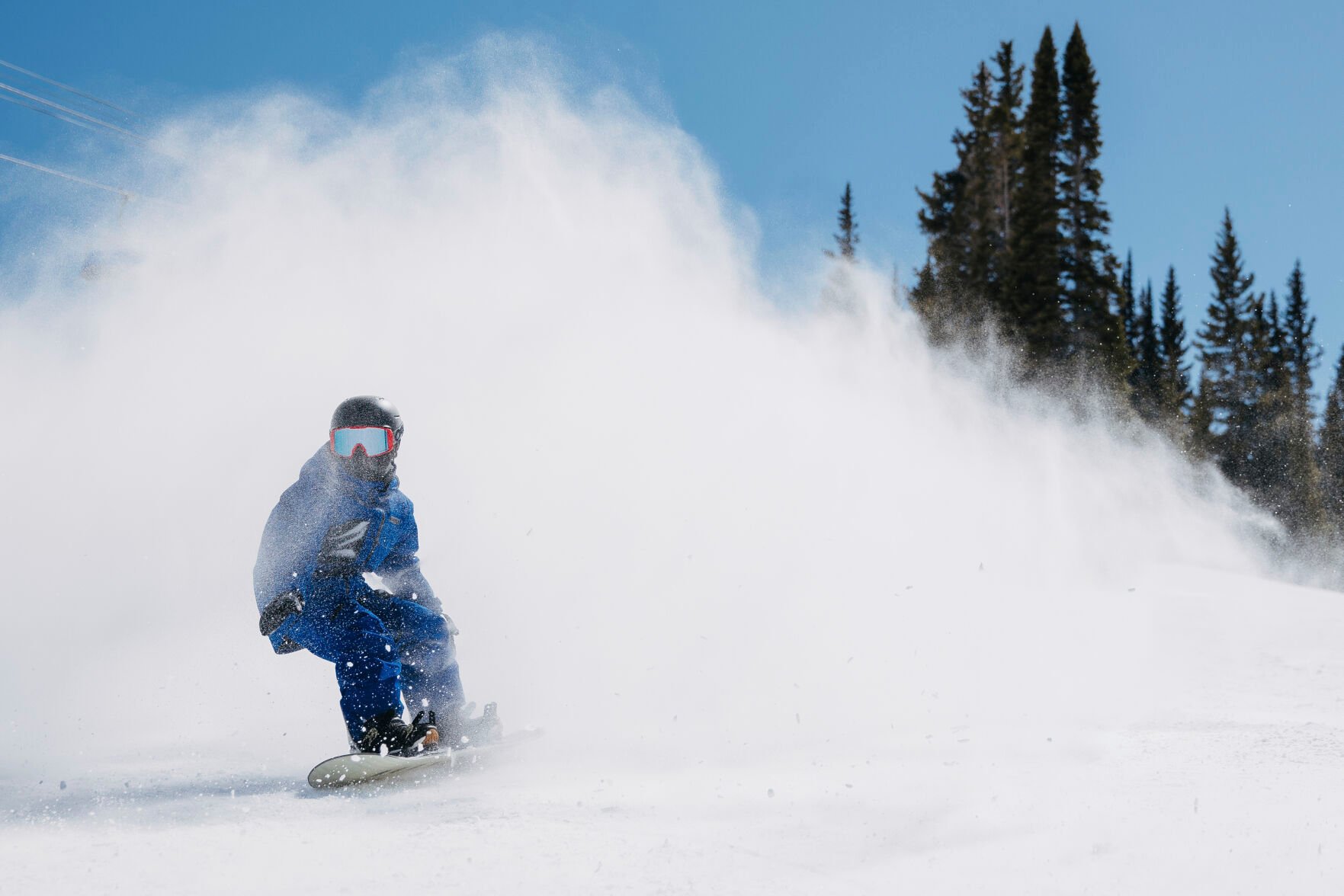 Patti Zhou, 11, snowboards at Copper Mountain, Colo., on April 8, 2022.